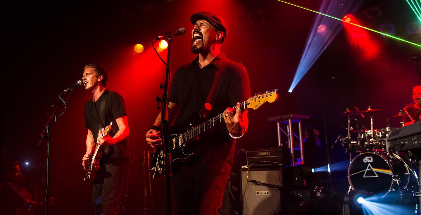Unlike many tribute bands, Which One's Pink? makes no effort to appear like their predecessors, instead focusing exclusively on recreating the surrealistic sound and psychedelic atmosphere associated with Pink Floyd. Lead singer and guitarist Paul Samarin eerily reproduces Pink Floyd’s distinctive vocals, and his guitar playing so closely mirrors Gilmour's solos that one swears the band must be running sequenced samples taken from the original recordings. Guitarist Allen Moreno captures the often hypnotic rhythm guitar parts, with Scott Richards (bass and vocals) and Marty Brumer (drums) completing the rock steady rhythm section. Larry Isenberg and Nick Feduska use multiple keyboards to paint the vast auditory canvas from which virtually all of the Floyd’s catalogue gets its distinctive ethereal sound.