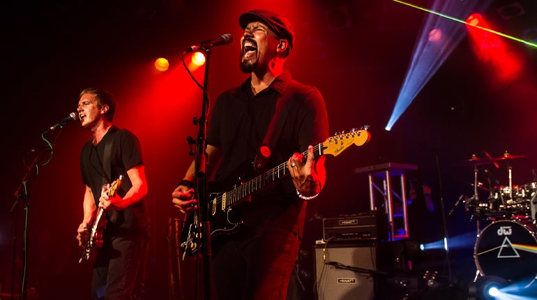Unlike many tribute bands, Which One's Pink? makes no effort to appear like their predecessors, instead focusing exclusively on recreating the surrealistic sound and psychedelic atmosphere associated with Pink Floyd. Lead singer and guitarist Paul Samarin eerily reproduces Pink Floyd’s distinctive vocals, and his guitar playing so closely mirrors Gilmour's solos that one swears the band must be running sequenced samples taken from the original recordings. Guitarist Allen Moreno captures the often hypnotic rhythm guitar parts, with Scott Richards (bass and vocals) and Marty Brumer (drums) completing the rock steady rhythm section. Larry Isenberg and Nick Feduska use multiple keyboards to paint the vast auditory canvas from which virtually all of the Floyd’s catalogue gets its distinctive ethereal sound.
